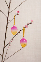 Ozdoba wielkanocna 2 szklane jajka z różowo- zielonym cieniem