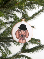 2 szklane bombki choinkowe w kolorze beżowym z ornamentową dekoracją
