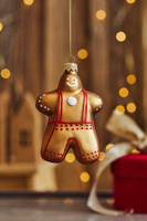 Szklana bombka choinkowa - czerwony piernik z białą dekoracją