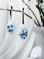 Ozdoba wielkanocna 2 szklane jajka z motywem kwiatów w granatowym kolorze