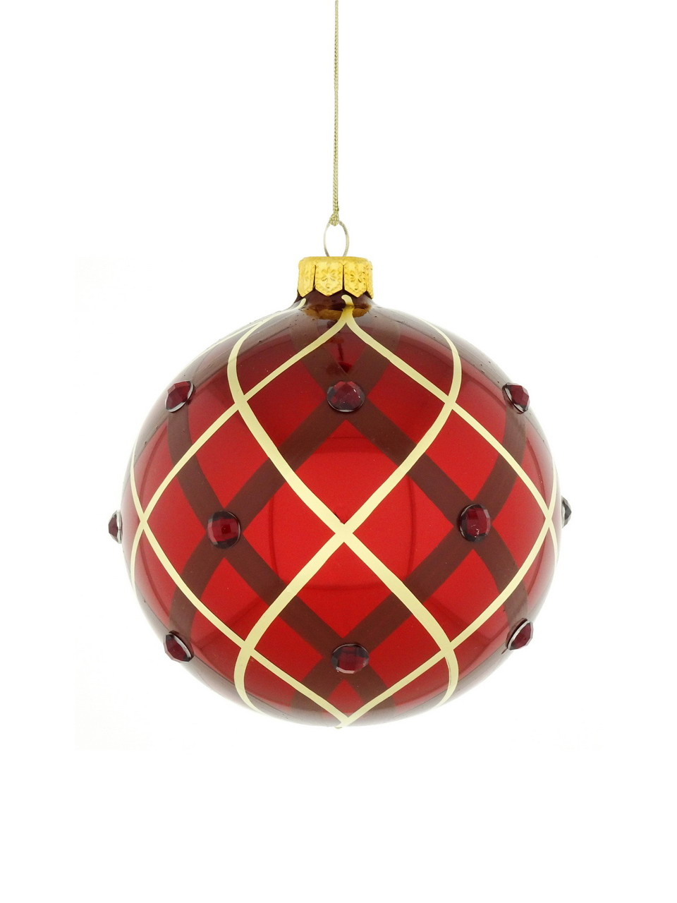 Opinie o 2 szklane bombki choinkowe w burgundowym kolorze z motywem kratki