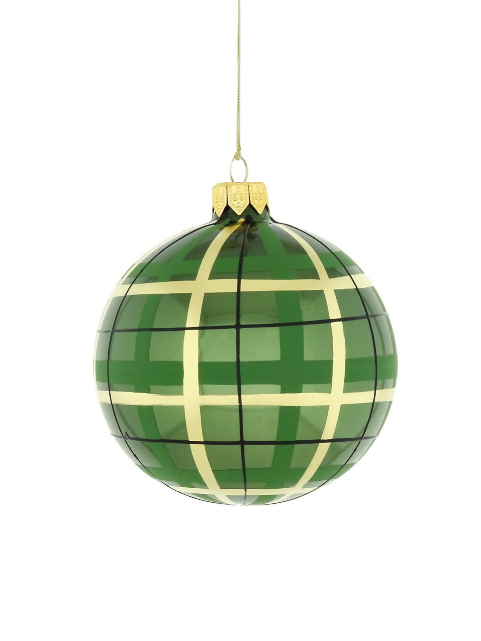 4 szklane bombki choinkowe w zielonym kolorze z motywem kratki