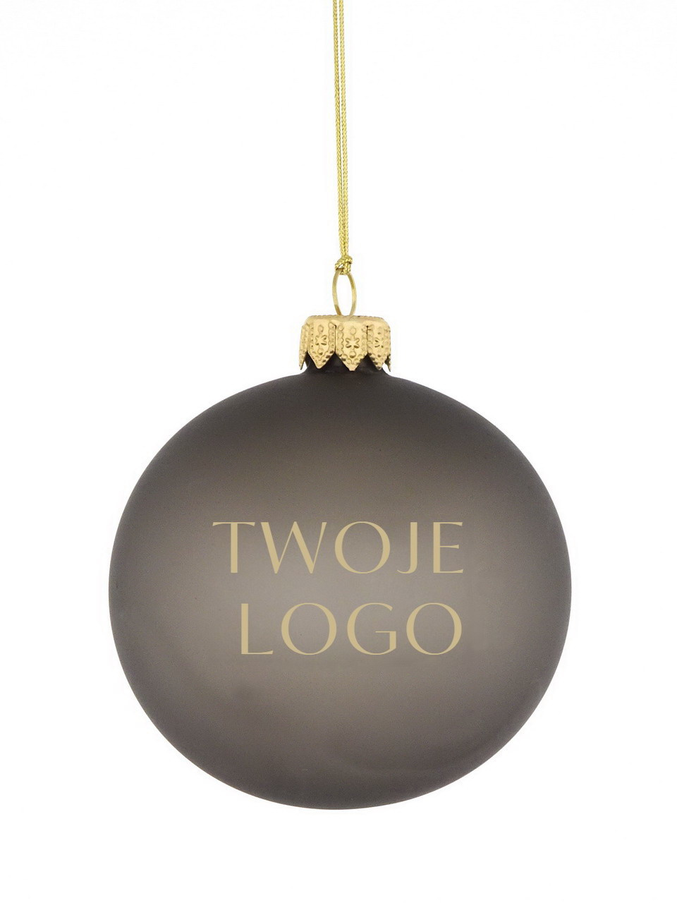 Szklana bombka choinkowa z logo w kolorze grafitowym 8cm